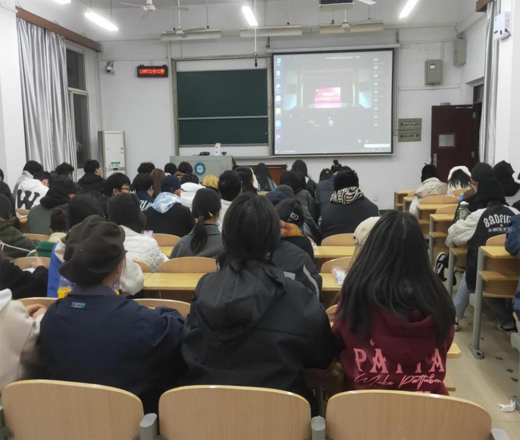 武汉市公安局陶涛警官以风趣幽默的方式将同学带入现实安全的问题中,从人身安全、财产安全、公共安全三个角度开展阐述并通过校园贷、AI冒充亲人,杀猪盘等真实案例向同学们表明生活中不容小觑安全问题。他重点向同学们讲解了公共安全,并指出“安全无小事,生命重如山。”公共安全不仅仅是校内安全,同时消防、出行、校外活动以及网络的安全也十分重要。他强调,不健康的网络活动不利于公共安全,容易掉进“被骗”的陷进之中。陶警官希望同学们要保护好自己的个人隐私,提高安全警惕,美好平安的度过大学生活。