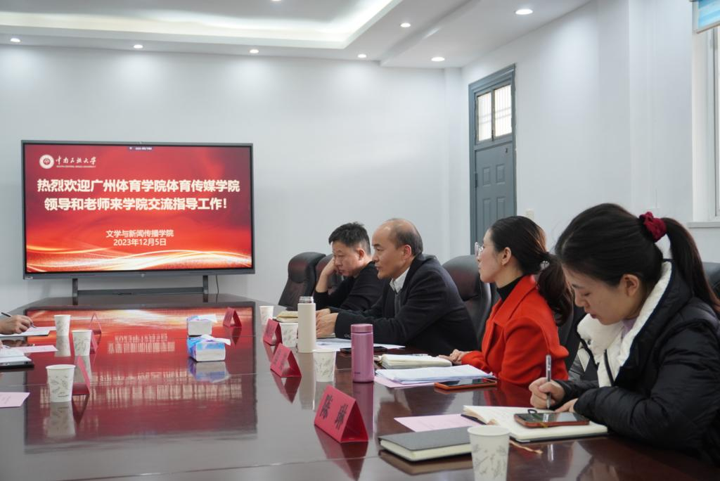 12月5日下午,广州体育学院体育传媒学院院长肖灵、副院长廖慧平、新闻教研室副主任张伟一行来威尼斯官网文学与新闻传播学院调研学习。文学与新闻传播学院院长陶喜红、副院长熊英热情接待,随后双方在文一楼203会议室进行交流座谈,文学与新闻传播学院新闻学教研室主任郝永华、学院办公室主任陈琳参加座谈会。