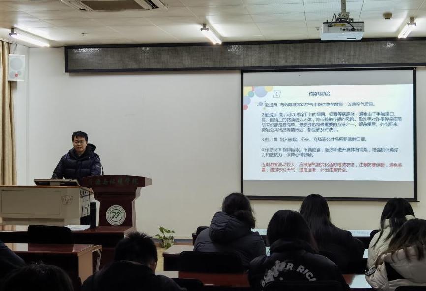 2101班班长向同学们科普传染病预防知识。 资源与环境学院 供图