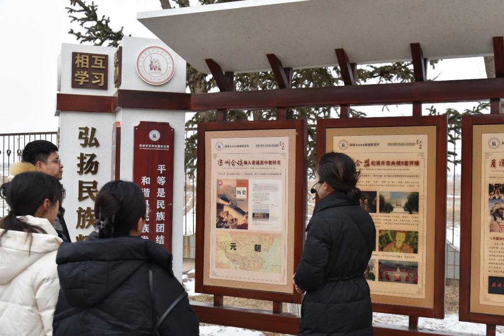 在武威市凉州区,团队先后前往凉州会盟纪念馆、天梯山石窟、武威市博物馆、武威市大数据中心、鸠摩罗什寺、五凉文化博物馆等地。团队成员观察武威如何通过讲好“凉州会盟”故事、深挖文物历史内涵、建设网络平台共促民族“三交”,学习当地如何讲好民族团结进步故事,做好新征程上铸牢中华民族共同体意识宣传教育工作,深刻感知新时代以来铸牢中华民族共同体意识“武威模式”。