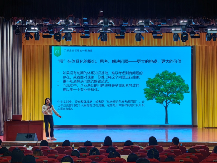 春光作序,万物和鸣。为充分汇聚校友资源、挖掘校友典型、凝聚校友力量,着力构建校友与母校、母院的事业命运共同体,正值专业分流之际,4月13日下午,管理学院于学术会堂召开专业分流暨校友经验分享会,12位2019级优秀毕业生校友受邀返校做分享,2023级全体学生参会。会议由2023级辅导员李丹主持。