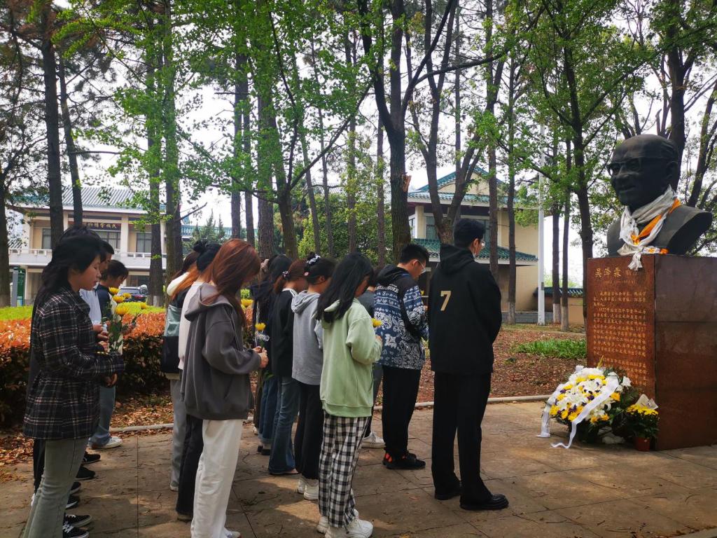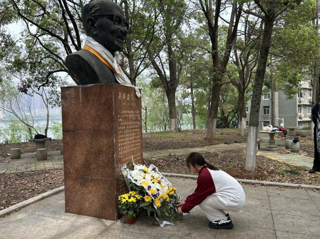为缅怀伟人先进事迹,传承前人奋斗精神,4月3日中午,药学院开展“清明祭哀思,精神永传承”祭扫活动,学院学工办主任陈玲、辅导员李丹和彭宇涵带领青年学生代表深切缅怀吴泽霖先生。活动由兼职辅导员方涛主持。