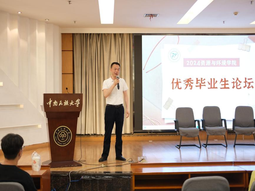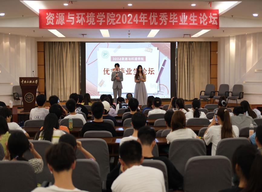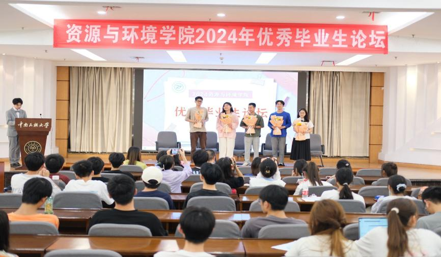 学习榜样精神,汲取奋进力量。5月26日晚,资源与环境学院在润良报告厅举办2024届优秀毕业生论坛。学院党委副书记蓝永丽、副院长徐志高、团委副书记王莹莹、优秀毕业生代表以及各年级学生代表出席本次论坛。论坛由2023级学生杨忠泉、耿旗旋主持。