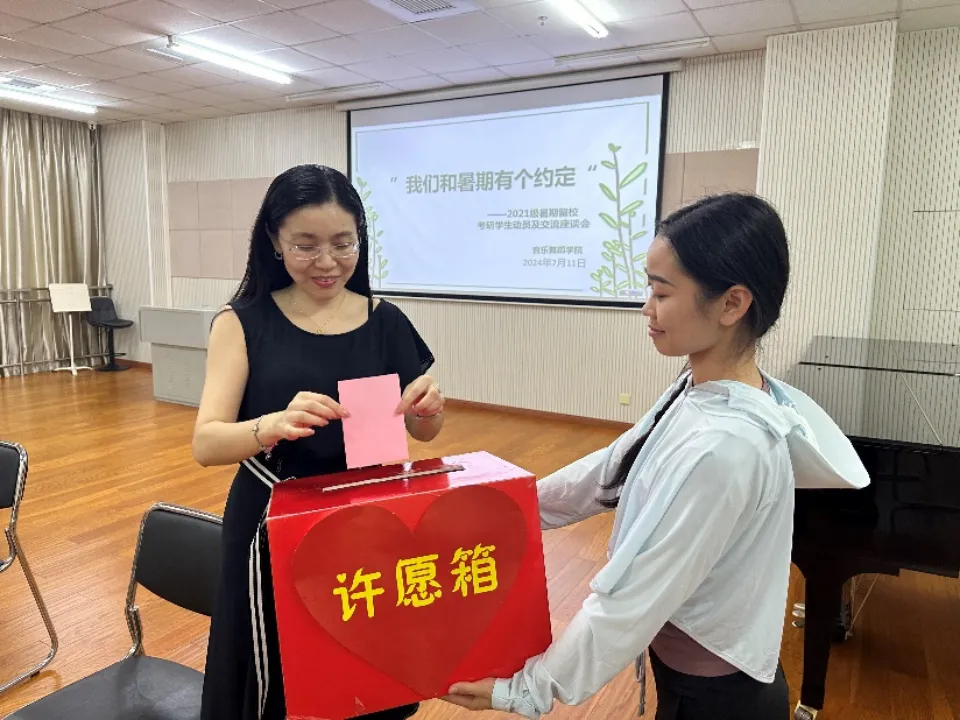随后,进行师生答疑交流环节,学生向老师及领导们提出生活或学业上的困惑,由老师进行记录并解答。最后同学们纷纷在心愿纸上写下愿望与暑假学习目标,投入心愿箱。座谈会上,院长罗义华语重心长地向同学们强调,书中自有黄金屋,书中自有颜如玉,期望大家多读书,多学习,充实丰富自己。鼓励大家积极考研,也祝愿大家心想事成,一“研”为定。