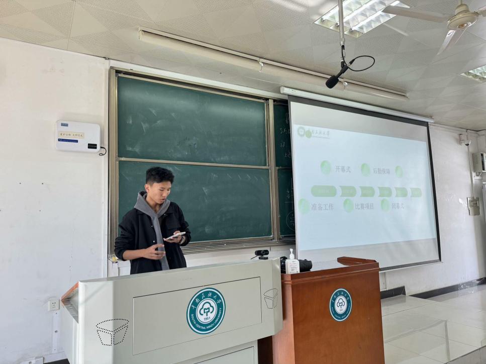 体育部丁文涵向参会的首先介绍了本次运动会以“开展全民健身活动,加快建设体育强国”为宗旨,随后详细解读了运动会的赛程安排、比赛规则及注意事项,接下来,对参赛运动员进行了安全教育,鼓励各位运动员要坚守诚信比赛、友谊第一、安全第二、比赛第三的原则,并要求团委学生会各部门要互相配合,做好各项后勤保障工作,维护好运动会现场秩序,让各位运动员们能够感受团结、友爱。