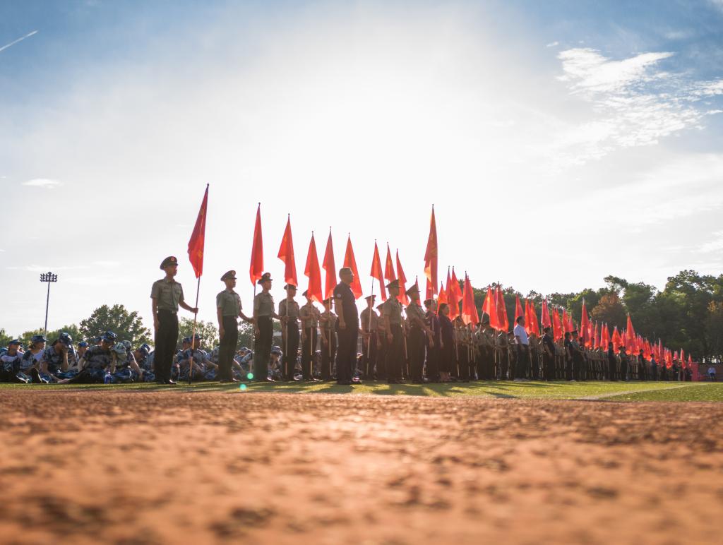暖场环节中,全场齐声高唱《团结就是力量》《我的祖国》《没有共产党就没有新中国》,歌声激昂,情感真挚。在庄严的升国旗、奏唱国歌仪式中,军训开训仪式正式拉开了帷幕。