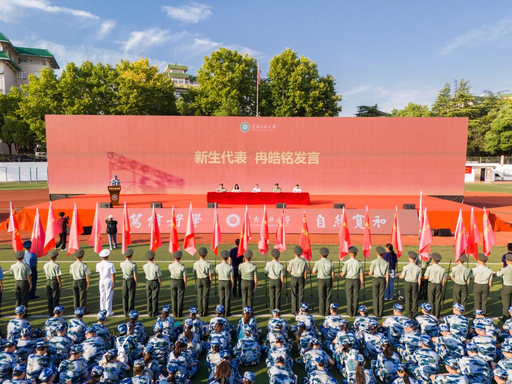 本科新生代表、生物医学工程学院学生冉皓铭汇报了自己的思想感悟,誓言将以最高标准完成每一个动作,以最严格的要求对待每一次训练,用实际行动展现民族大学学子的昂扬风貌与青春力量。