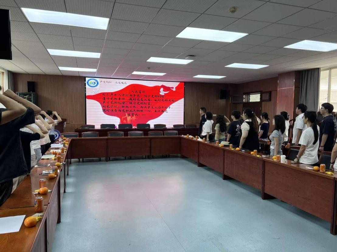 最后,全体党员在郭晖的带领下,重温入党誓词。铿锵有力的誓言,进一步坚定了党员们的理想信念,激励毕业生党员在未来的工作学习中始终不忘初心、牢记使命,践行全心全意为人民服务的根本宗旨。