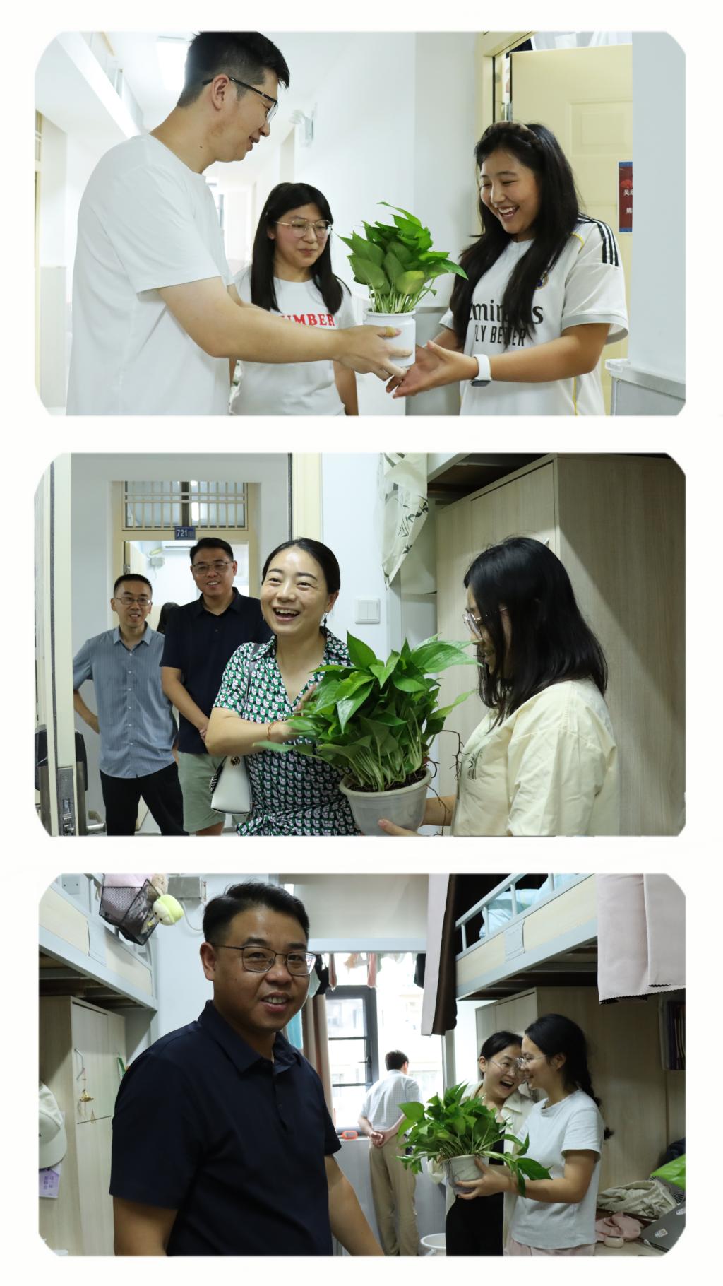新学期伊始,为深入了解学生返校后的住宿情况和思想动态,9月5日下午,我院党委书记钱文彬,党委副书记王璐璐,副院长齐子通,学工办副主任袁磊,各班班导师和辅导员一同前往学生宿舍,开展新学期走访慰问活动,并为同学们送上了寓意美好的绿植。