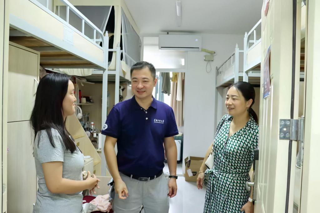 在走访过程中,老师们与学生进行了亲切的交流,详细了解了学生返校后的适应情况、暑假期间的学习生活收获以及新学期的规划安排。他们耐心倾听同学们的意见和需求,并结合实际情况,提出了切实可行的学习和生活建议。同时,老师们还认真检查了宿舍设施的使用状况,提醒大家注意寝室安全,并加强防范电信网络诈骗的意识,鼓励同学们以积极健康的心态投入到新学期的学习生活中。