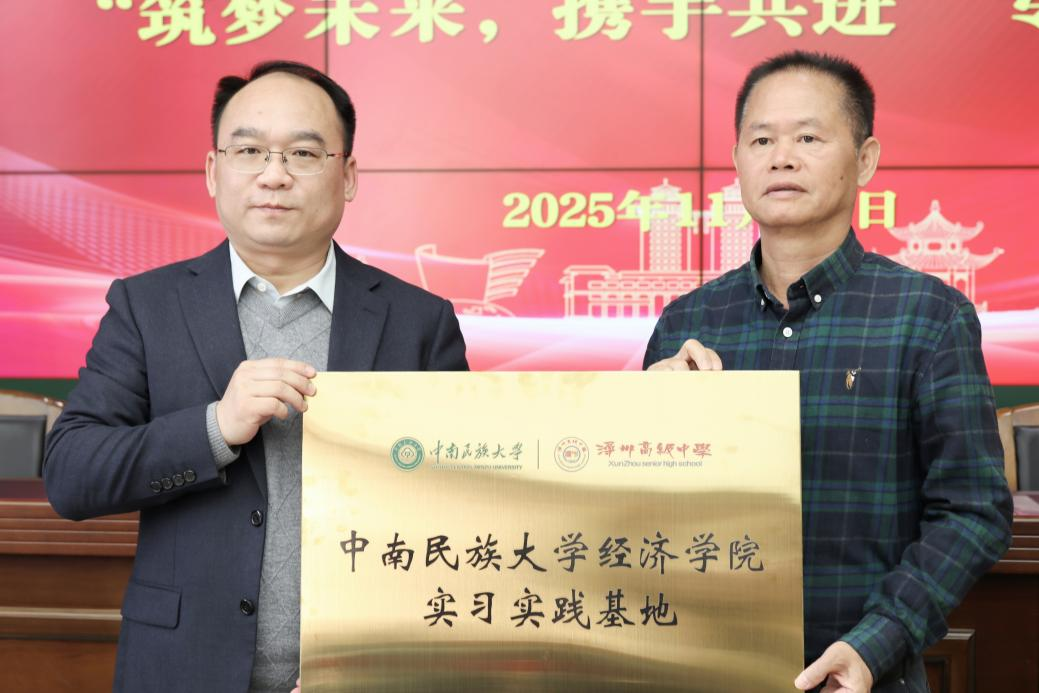 经济学院院长李波代表学院向浔州高级中学授予“经济学院实习实践基地”铜牌,标志着两校合作迈入新阶段。