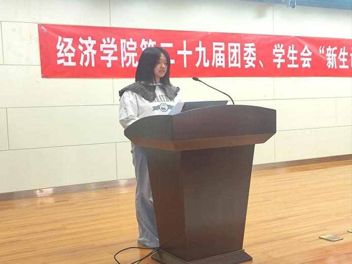 院学生会主席团成员魏炜烨在致辞中,欢迎了新加入第二十九届团委、学生会“新生训练营”的营员们,并代表主席团提出三点希望:一要坚守初心,永葆服务热忱;二要勇于担当,锤炼过硬本领;三要团结协作,凝聚奋进合力。她号召全体成员携手共进,为学院发展和同学成长贡献青春力量。随后,院团委干事代表罗欣雅与院学生会干事代表李铭镐也先后发言,表达了他们恪尽职守、共创未来的决心。