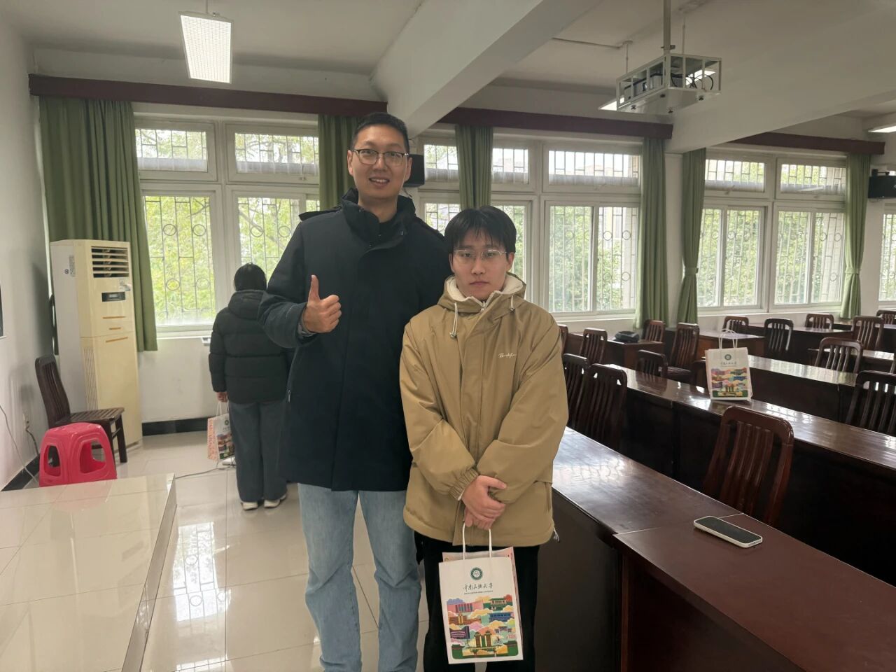 2022级辅导员陈玮龙为考研同学分发礼品 李建青 摄