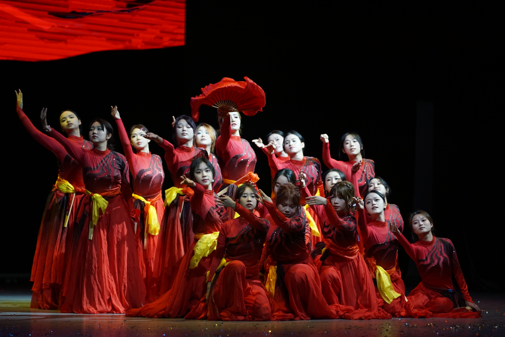一袭红裳翩跹如星火,舞姿柔中带刚,汇聚成燎原之势,呈现出一场兼具古典意蕴与时代力量的视觉演绎。