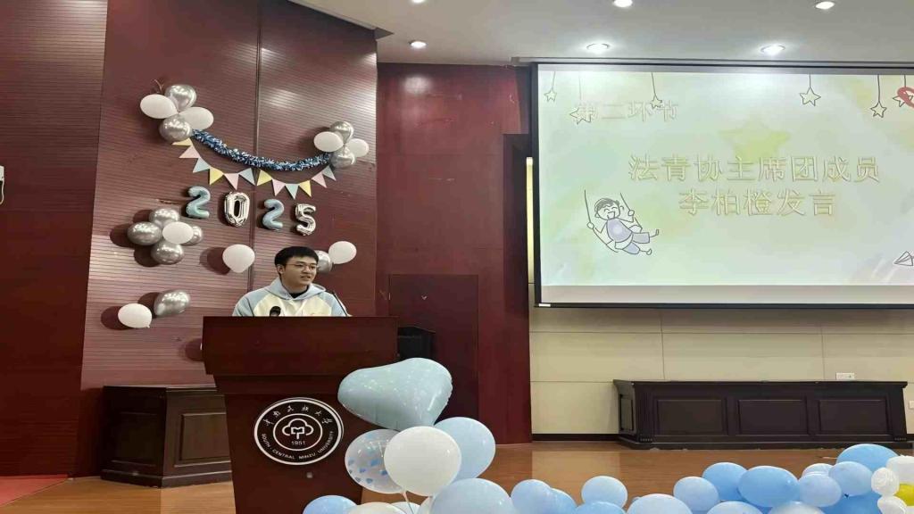 法青协主席李柏橙在发言中肯定了25级各团支部的辛勤付出,阐述了本次活动的前期准备,鼓励大家将志愿精神延续,让温暖渗透校园与社区的每一个角落。
