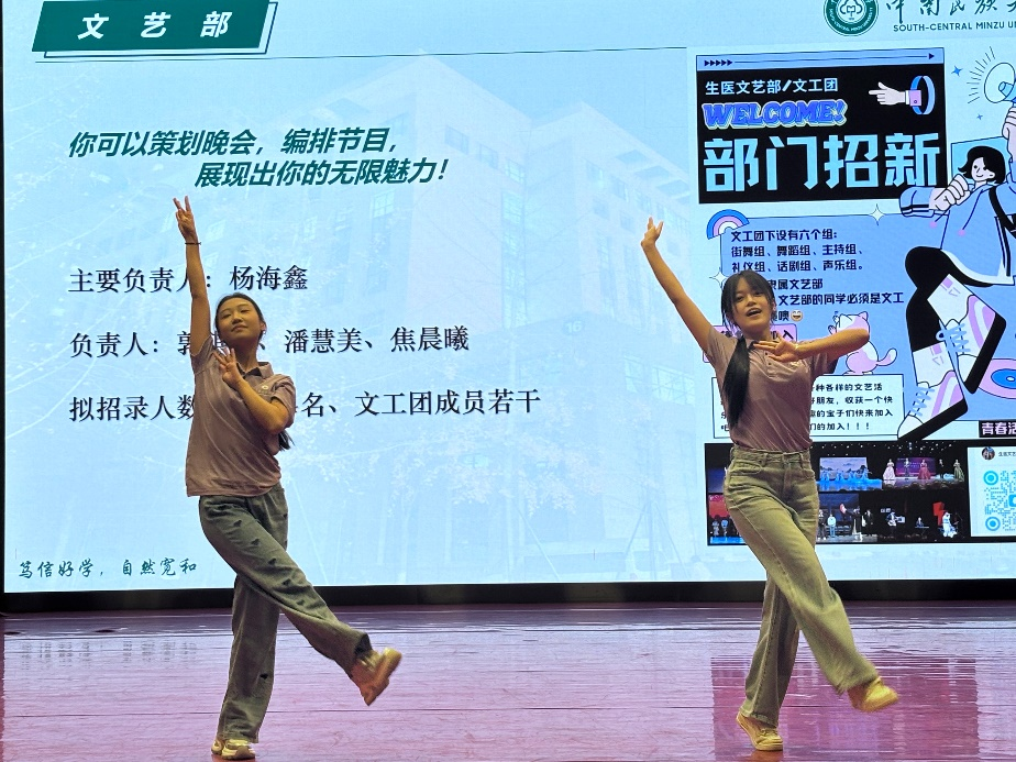 随后,活动进入院团委学生会各部门招新宣讲环节。文艺部率先登场,各文艺小组各显神通,尽显我院团委学生会的精神风貌。各部门依次进行招新宣讲,宣讲过程中,新生们踊跃提问,抽奖互动频繁,现场气氛热烈欢乐。最终,宣讲会在一片掌声中圆满落幕。