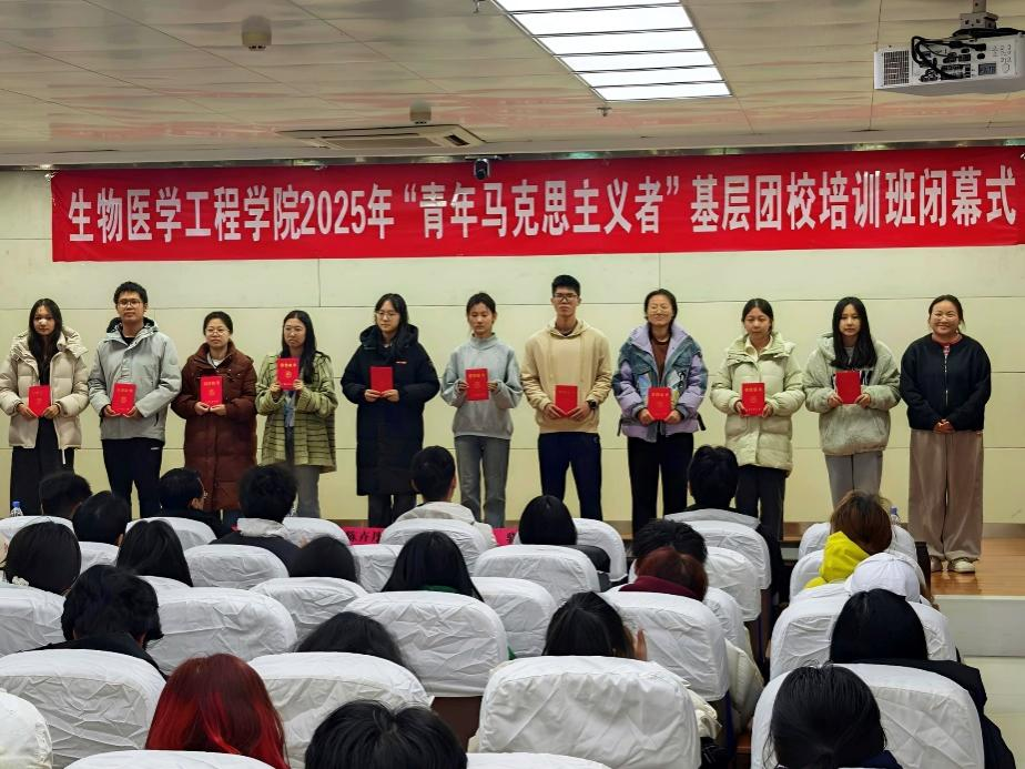 (文/周宇琴,图/李文珊)为总结“青年马克思主义者”基层团校培训班的学习成果,表彰优秀学员,推动团学工作的顺利开展,我院于12月12日中午在16栋二楼报告厅举行生物医学工程学院2025年“青年马克思主义者”基层团校培训班闭幕式。院党委副书记王清华,辅导员魏邱霞、柴成龙、陈卉丹、郭骁,兼职辅导员王东、杜思睿以及院团委学生会主席团成员出席本次活动。活动由2025级黄麒樾主持。