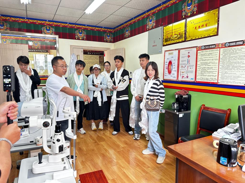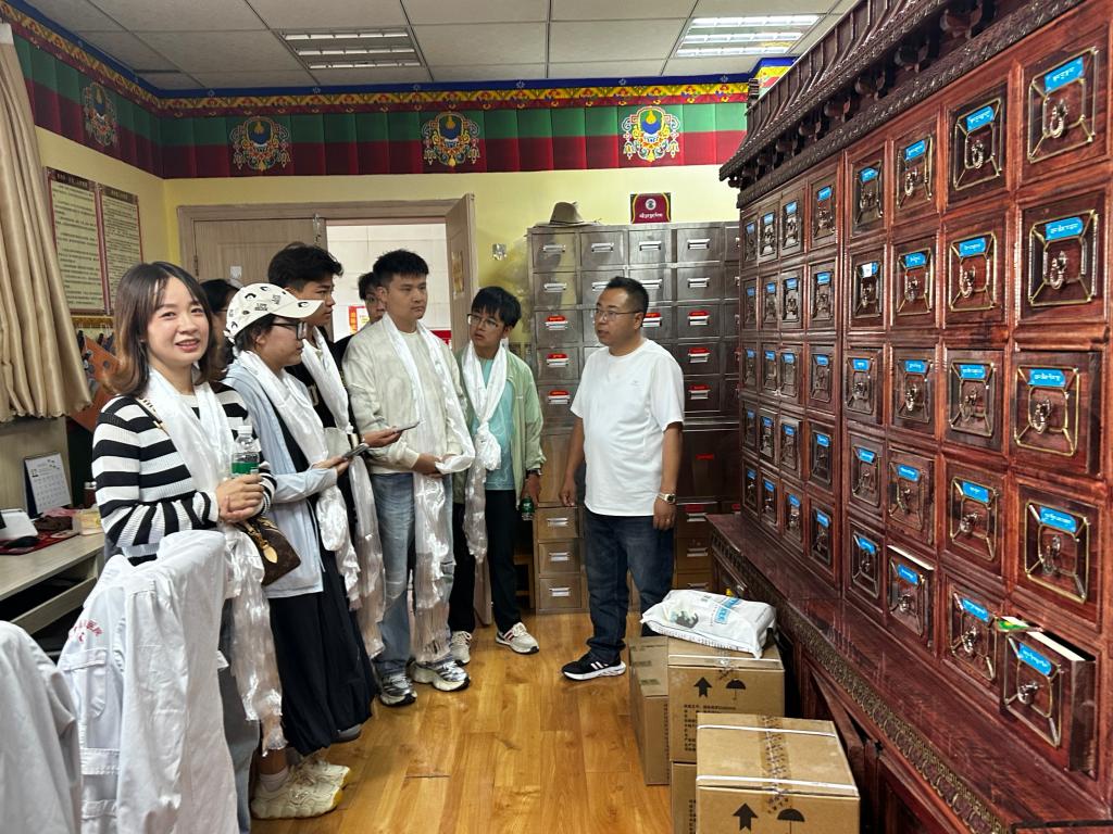 在曲松县藏医院,调研队重点考察了传统藏医与现代医疗技术的融合创新,尤其在慢性病治疗中的特色实践。医护人员详细介绍了藏医结合现代理疗设备的应用案例,许多传统智慧与现代科技相结合的诊疗模式,不仅体现了藏医的独特价值,更为提升民族地区慢性病防治水平提供了新思路。在曲松县人民医院,师生们详细考察了新近投入使用的医疗信息系统和电子健康档案平台的运行情况。柴成龙老师与技术人员深入交流了平台数据安全、互联互通等关键技术问题。该院白院长介绍,系统的应用有效实现了县域内各乡镇患者数据的共享,有力助推了紧密型医共体建设。在扎囊县藏医院,队员们对藏医特色诊疗技艺与现代智能辅助设备的融合应用表现出浓厚兴趣,并了解到信息化平台显著提升了药材管理效率和诊疗规范性。叶颖老师代表学院表示,后期愿在设备操作培训与维护方面提供技术支持。