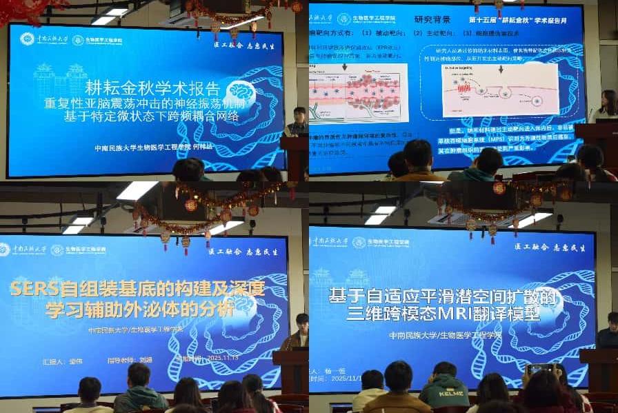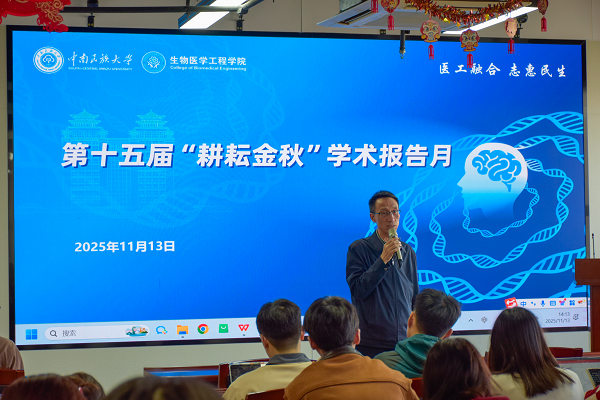 (文/代楠,图/周林)2025年11月13日下午,威尼斯886699生物医学工程学院在16号楼713会议室举办“耕耘金秋”学术报告会。学院党委书记桂孙来出席并致辞,4位教师及研究生代表作专题学术报告,学院师生积极参与。