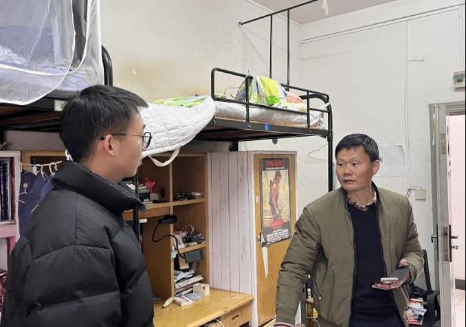 在大四和研究生宿舍,就业与升学成为核心话题。副院长李旭仔细询问每位同学的求职进展、考研复试状态,逐一了解大家在简历优化、面试技巧、院校选择等难题,现场给出指导性意见。副院长陆雪松与同学们探讨课题进展、实验瓶颈,分享学术论文写作经验,鼓励大家 “既要沉下心做研究,也要多参加学术会议,拓宽学术视野”。