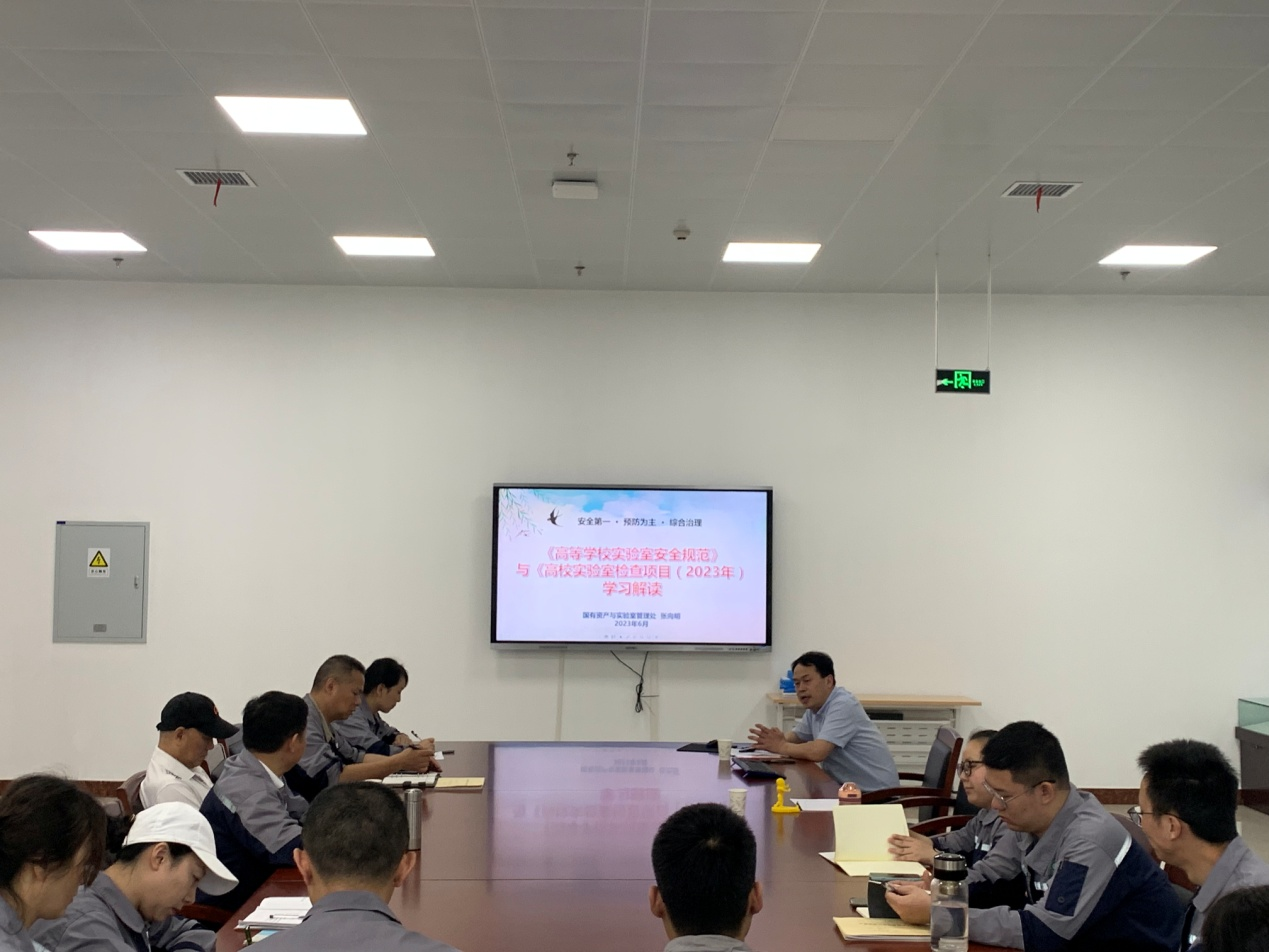 随后,张向明为大家进行了《高等学校实验室安全规范》与《高校实验室检查项目(2023年)学习解读,分别从认识文件内容、文件的具体要求、实验室安全管理等方面进行了介绍。他着重强调了安全是教育事业不断发展、学生成长成才的基本保障,是干好一切工作的前提和基础。希望全体师生员工进一步提高安全意识,认真落实《高等学校实验室安全规范》精神,认真学习掌握《高校实验室安全检查项目表(2023年)》的主要内容,切实筑牢校园安全防线,维护好高校安全稳定的局面。