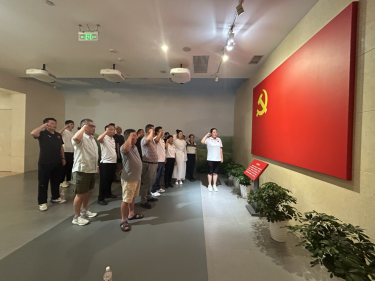 在陈列馆一楼鲜红的党旗前,党员们重温入党誓词,庄严宣誓,表达不忘初心、牢记使命的信念和决心。
