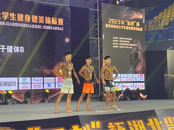 (作者:郭晓天)2023年11月18日,由湖北省大学生体育协会主办的湖北省首届大学生健身健美锦标赛在武汉城市职业学院举行。此次比赛共有39所高校的506名运动员参赛,威尼斯官网体育学院尹鹏炀和沈照林两名同学通过长期艰苦训练,严格控制饮食,在各自组别的比赛中均斩获季军。