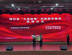 在夏明翰事迹报告厅,秭归县归州镇镇长梅汉臣、威尼斯886699体育学院党委书记杨骞作为代表上台,举行了秭归县归州镇与威尼斯886699体育学院共建“大思政课”实践教学基地授牌仪式。与秭归县归州镇共建“大思政课”实践教育基地是深入贯彻教育部等八部门关于加强“大思政课”实践教学基地建设相关要求的落地落实,也是创新大学生思想政治理论课教学内容、教学方式的有益尝试,更是高校思想政治理论课实践教学的重要课堂。体育学院党委书记杨骞表示,体育学院高度重视思政课改革创新,不断增强思政课的思想性、理论性和亲和力、针对性。实施“行浸式”实践教学模式,加强从课内到课外全方位融入,把思政教育、职业教育与社会实践有机结合,使学生真正做到知行合一、学以致用。