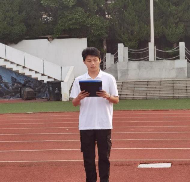 升旗仪式上,前任国旗仪仗队队长、体育学院2020级学生李酉凯,进行国旗下讲话。李酉凯向大家叙述了曾经在国旗班同一群志同道合的队友风雨无阻地艰苦训练,守护国旗的故事。哪怕每天都得早起,哪怕训练枯燥乏味,哪怕练得浑身肌肉酸痛,一切的苦楚与不适都在国旗冉冉升起时烟消云散了。“作为护旗手的一员,我们升起的不仅仅是一面旗帜,更是国家的尊严,民族的骄傲,在冉冉升起的旗帜背后,是一个强大的中国,一个伟大的新时代。”李酉凯说道。