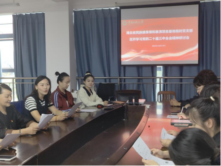 2024年10月20日下午,第十二届全国少数民族传统体育运动会民族健身操和表演项目湖北省代表队临时党支部在17号教学楼203教室开展了主题为学习党的二十届三中全会精神研讨会,临时党支部成员、党小组成员、教练员和运动员代表出席。研讨会由党支部书记高文洁老师主持。本次会议旨在贯彻落实湖北省体育局副局长暨湖北省第十二届全国少数民族传统体育运动会组委会秘书长骆启义于10月7日检查代表队时提出的相关要求,通过学习领会党的二十届三中全会精神,加强管理、科学训练,引导全体运动员统一思想、凝心聚力、积极备战。