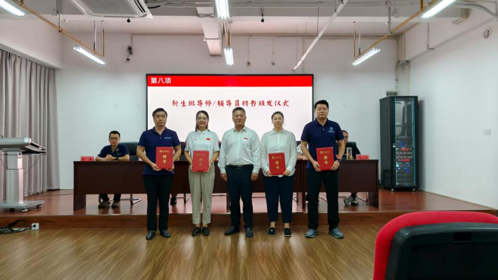 典礼上,洪盛志宣读本科生班导师和研究生辅导员聘任决定,指出他们将成为新生学业上的“引路人”、生活上的“守护者”、成长上的“陪伴者”,并为受聘本科生班导师和研究生辅导员颁发聘书。随后,新生班导师代表上台寄语,为新生送上暖心祝福与成长指引。