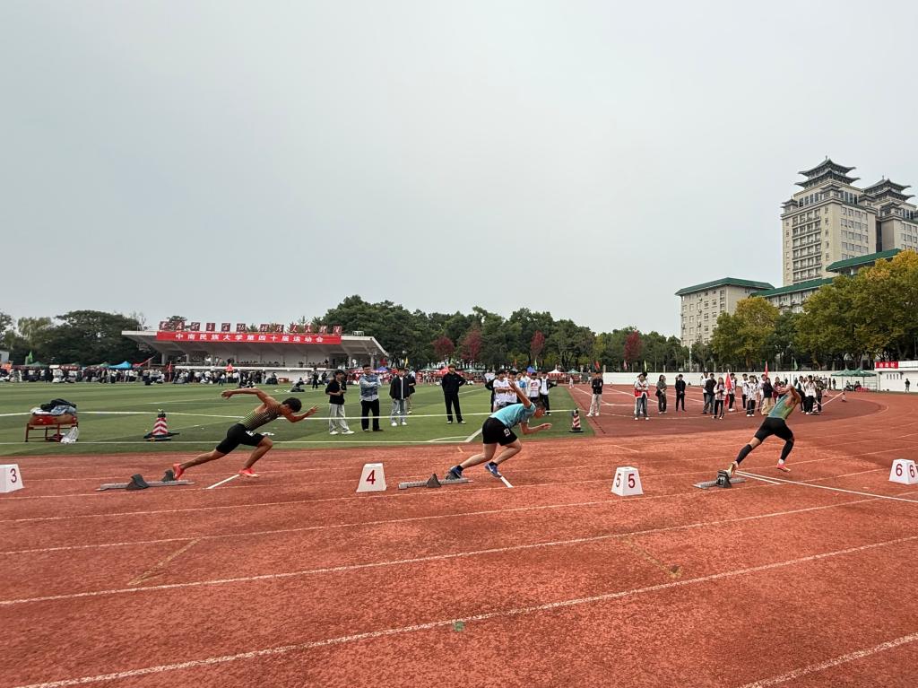 本届运动会共设置38个竞赛项目,涵盖径赛、田赛、球类等多个类别。田径赛道上,选手们如离弦之箭,起跑迅捷、冲刺有力;田赛场地中,跳远选手轻盈腾跃,铅球选手奋力投掷;球类比赛战术配合默契,攻防转换流畅;趣味项目氛围轻松活泼,各族师生在欢声笑语中增进交流。整个赛场气氛热烈,充分体现了竞技性与参与性的完美融合。赛场之外,200余名志愿者坚守在引导、检录、安保、补给等岗位,以专业细致的服务为赛事保驾护航;裁判员秉持公平公正原则,严谨执判;各学院啦啦队热情助威,用激情点燃赛场。全体师生凝心聚力,用实际行动诠释了“笃信好学,自然宽和”的校训精神。