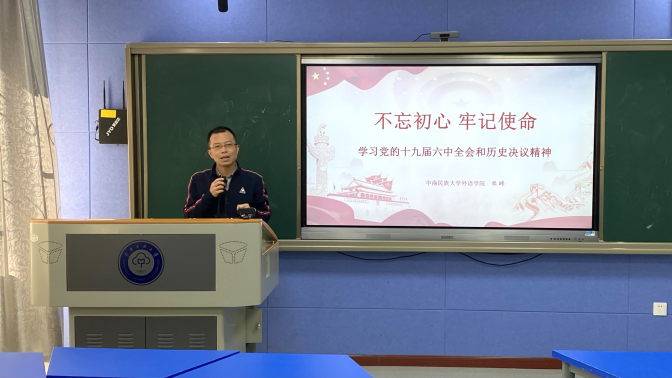 为进一步学习贯彻党的十九届六中全会和历史决议精神,11月16日中午,我院在10号教学楼226室召开本科生第二党支部党课,此次党课的主题为“学习党的十九届六中全会和历史决议精神”。外语学院党委委员、副院长皋峰为主讲人,本科生第二党支部全体同学参与本次党课学习。