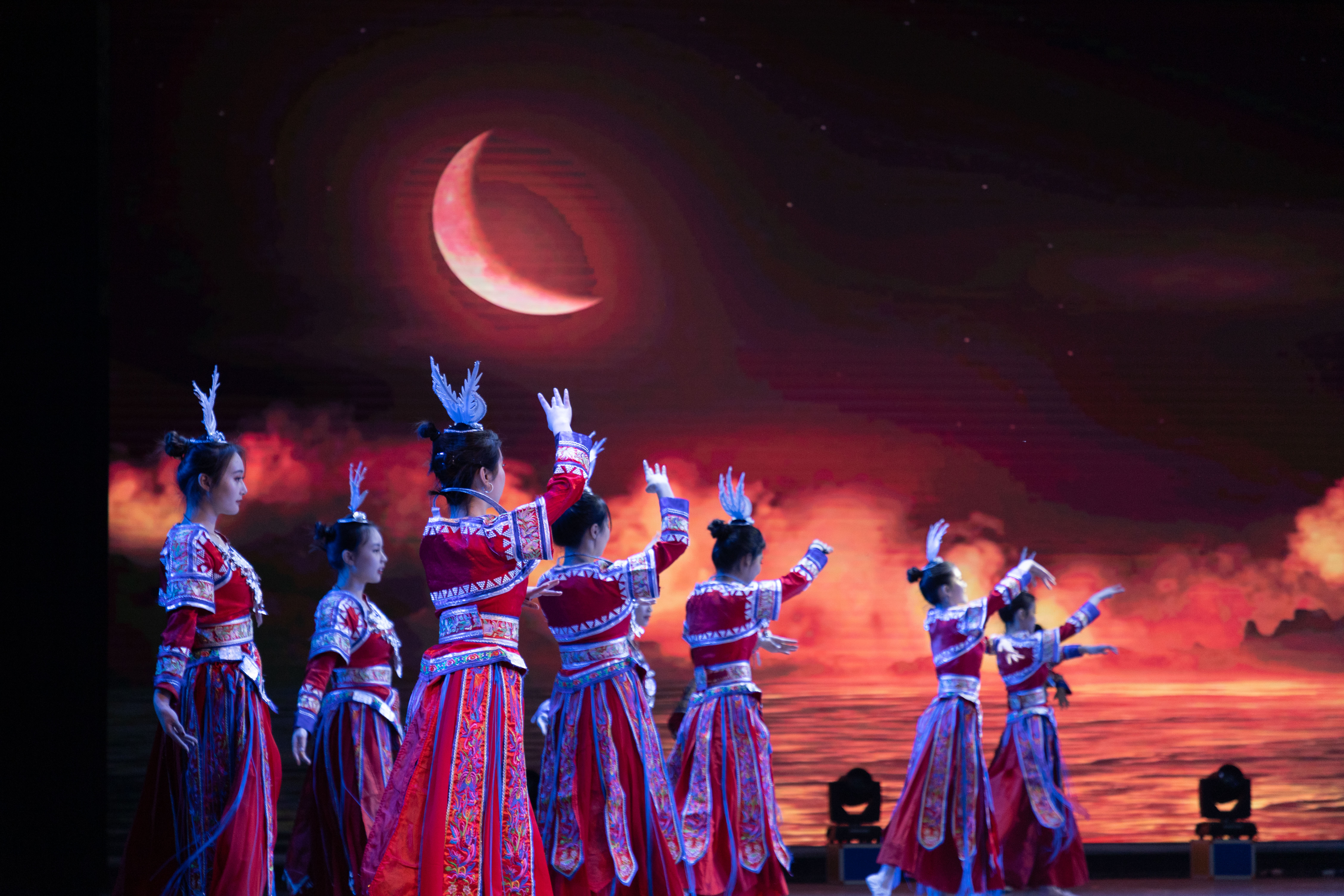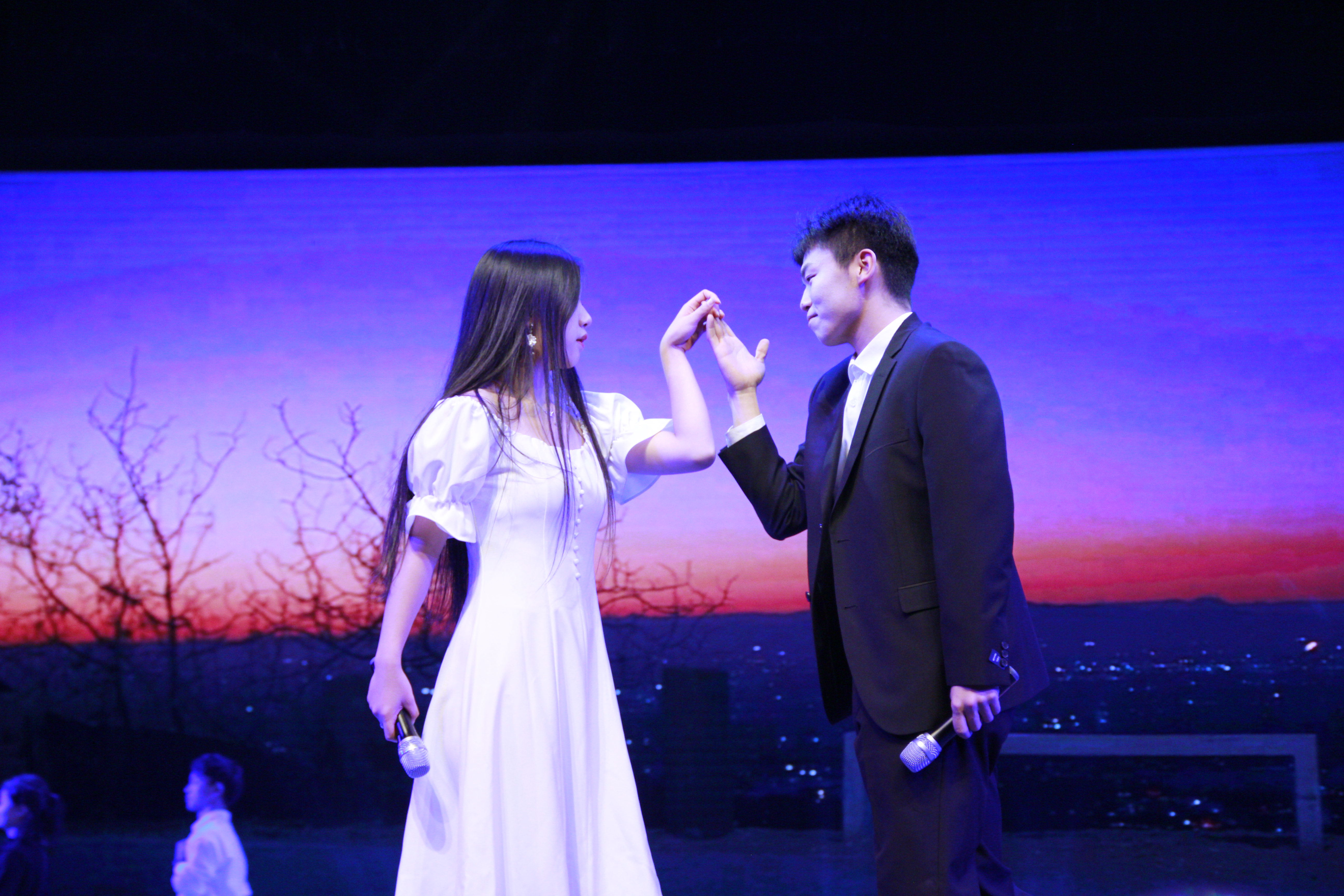 苗族舞蹈《月亮湾弯》在空灵的音乐中开始,舞者们身着民族服饰,站成队列,随着旋律翩然起舞,手臂摇动,如水般柔和,裙摆在旋转中绽放飞扬。歌舞剧《爱乐之城》演绎了一段动人心弦的爱情故事,优雅的舞步与跃动的旋律交融,剧中的人们相识,相爱,虽历经摩擦,但最终选择相守,在繁华的大都市中,梦伴爱生。