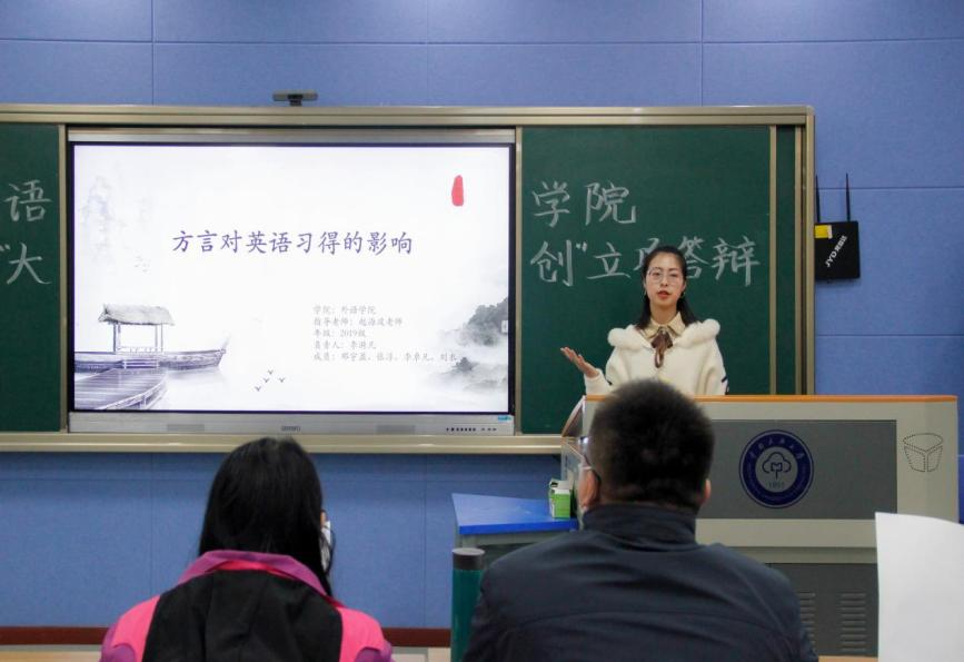 答辩分为项目展示和评委提问两个环节。四组代表围绕语言学习、教育、旅游经济与地域特色等,结合PPT逐一阐述研究目的、研究困难及解决方案。