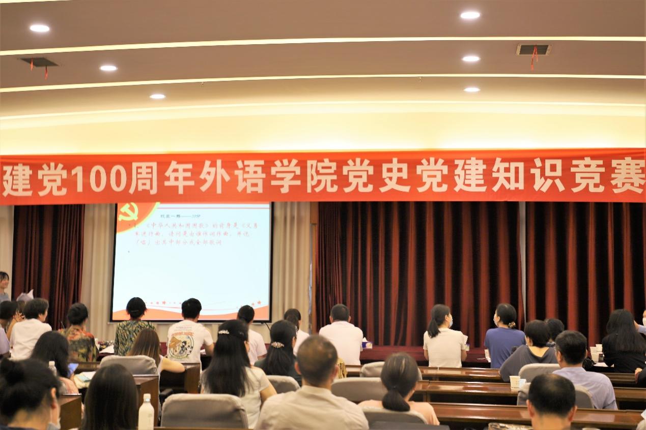 2021年6月10日,为积极落实校、院党委部署的党史学习教育工作任务,外语学院工会举办了“建党100周年党史党建知识竞赛”。比赛中,选手们精神饱满,认真作答,他们的表现充分展现了党员干部深厚的党史党建知识功底和昂扬的精神状态。