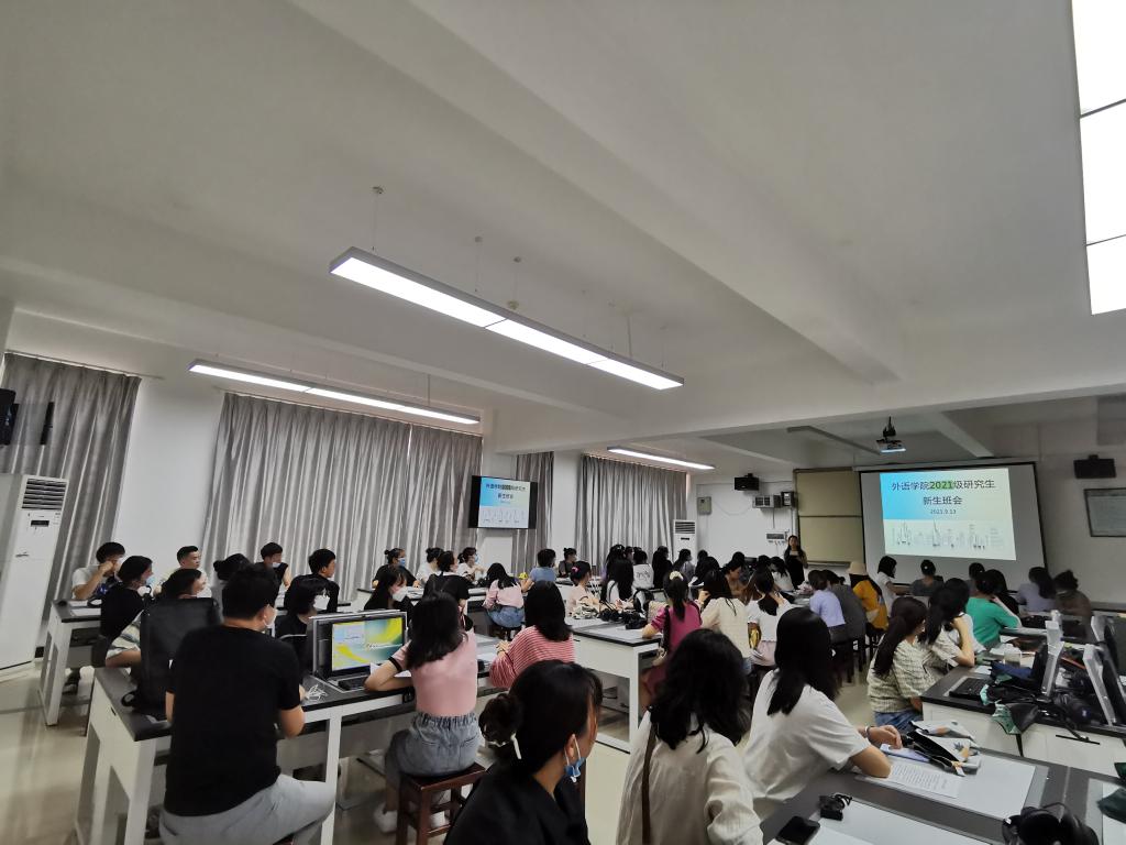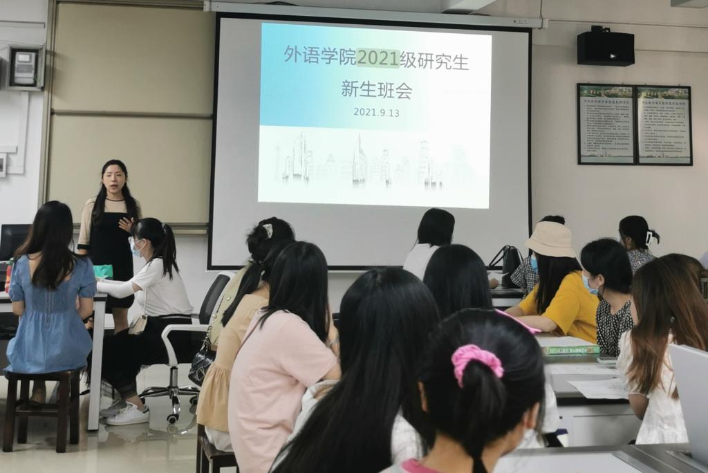 9月13日下午,我院召开2021级研究生新生入学教育班会,会议由研究生辅导员肖蒙主持,李明副院长参加,2021级全体新生参加。今年我院有68名研究生新生入学,分别在外国语言文学、翻译硕士和学科教学(英语)三个学位点,是近年来入学人数最多的一年,学院研究生培养规模进一步扩大。