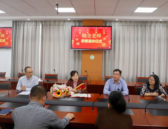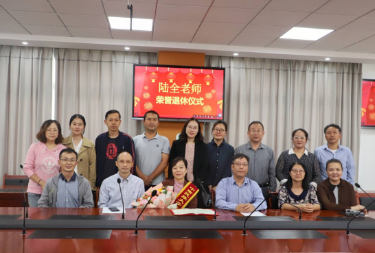 此后,陆全老师发表荣誉退休感言。她表示,从自己大学毕业到工作退休已经过去了34年,这其中的大部分时间都奉献给了学校,同时她也十分感激学校提供的机会以及学校、学院以及师生们给予自己的帮助和支持。并祝愿学院和学校取得更好的发展和成绩。 仪式的最后,与会者与陆老师合影留念。