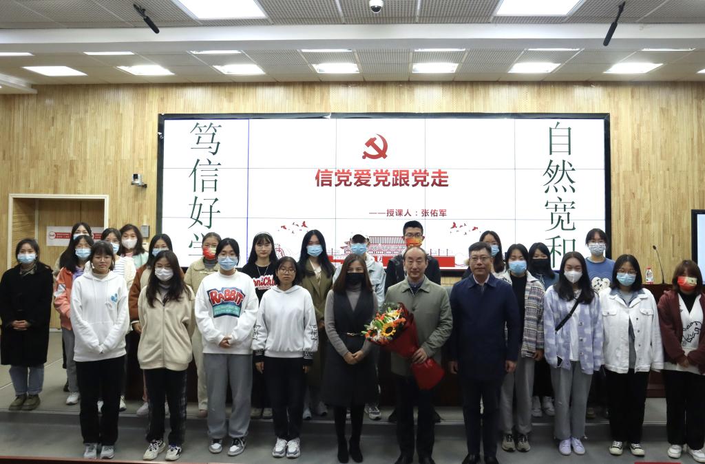 空军老战士报告团成立于1986年,始终坚守爱党信党跟党走的政治信仰,以“战争亲历者、历史见证人”的特殊身份,宣讲党的创新理论,同时这里也是学院校外党建活动基地。此次党课张佑军以革命英雄的事迹为例,向青年们阐述信党、爱党、跟党走的道理,其中着重讲述了空军老战士报告团老团长毛兰成的事迹。由于父亲被错误划分为资本家,毛兰成多次申请入党被拒,但始终以党员的标准要求自己,满怀对党的向往,最终于1965年加入中国共产党。张佑军指出,党绝不会抛弃一个向往她的人,青年学子一定要永远跟党走,并向同学们推荐了《为人民服务》、《愚公移山》以及《纪念白求恩》三篇文章,从中学习共产党的精神。