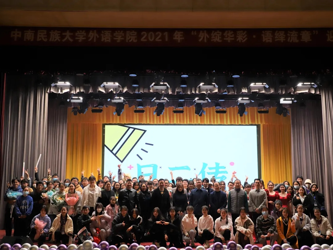 流光溢彩迎新夜,心心连新齐飞扬。11月27日晚,我院2021级“外绽华彩•语绎流章”迎新晚会在学术会堂揭开了它的神秘面纱。我院党委书记戴迎峰、院长及党委副书记易立新等领导出席晚会,众师生到场观看。