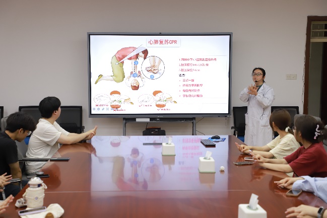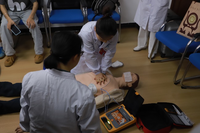 首先,杨冰医生系统介绍了心肺复苏(CPR)的重要性。她强调,在心脏骤停等危急时刻,时间就是生命。在“黄金四分钟”内及时、正确地实施心肺复苏,有望显著提高患者的存活率。随后,她向同学们详细讲解了胸外按压、自动体外除颤器(AED)、人工呼吸的规范操作流程与方法,并介绍了校内十六台AED的具体位置,确保学生在紧急情况下能快速获取救援设备。活动现场气氛热烈,学习热情高涨。最后,同学们在医护人员的指导下积极进行实操演练。