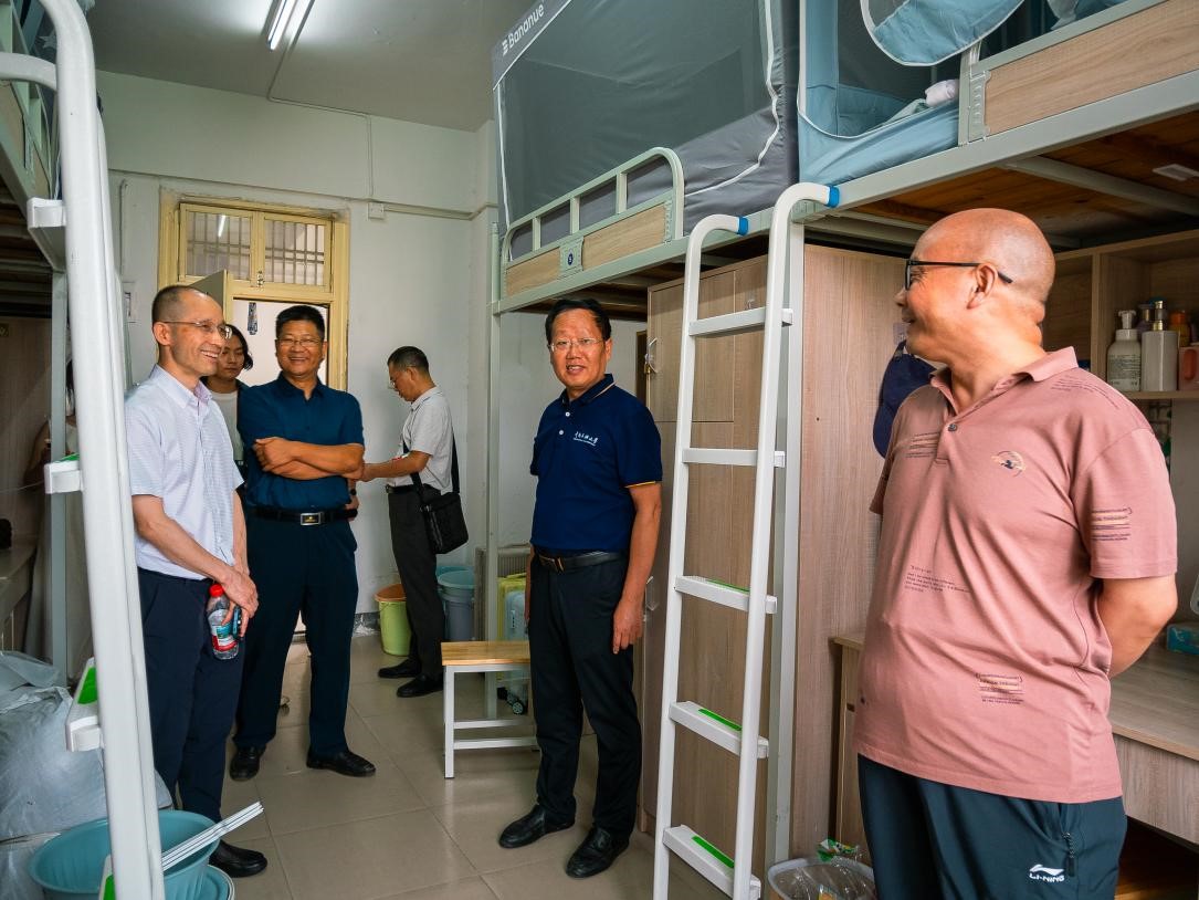 9月13日,正值2025级新生入学报到之日,为深入了解新生入住情况,帮助新生尽快适应大学环境,外语学院党委书记李春雷,党委副书记、院长易立新,党委副书记姬扬、班导师代表翁义明、梁书轩及新生辅导员董津佐一行,深入外语学院新生宿舍,走访慰问刚刚入校的外语学院2025级本科新生,为他们送去学院的殷切关怀和温暖问候。