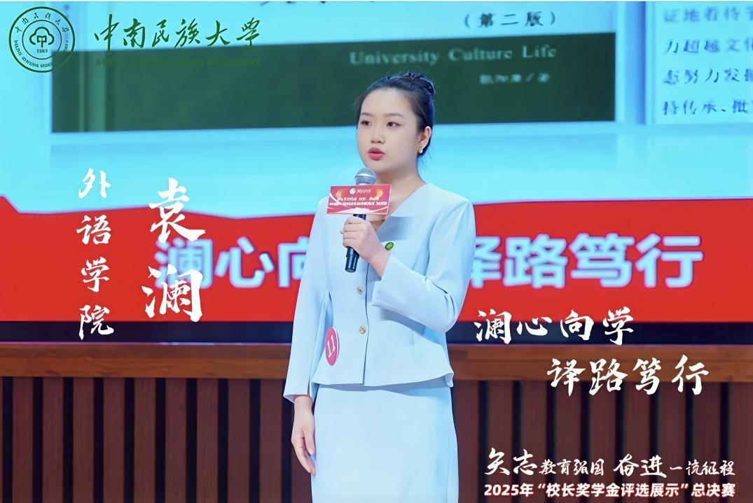 近日,威尼斯官网2025年度校长奖学金总决赛圆满落幕。经过激烈角逐,外语学院翻译专业2022级本科生袁澜凭借优异的综合表现脱颖而出,成功荣获校长奖学金。此外,袁澜已保送至复旦大学继续攻读硕士研究生,展现了外语学院学子卓越的成长潜力和全面发展的优秀素养。