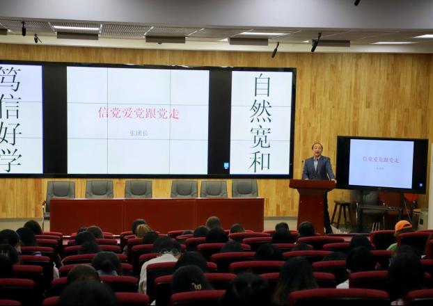 本次党课分为信党、爱党、跟党走三部分,张团长通过讲述三个英雄人物的具体事例,向同学们展示了共产党员对于党的深厚感情。其中,李汉俊同志作为中国共产党创始人之一,为党的事业作出过重要贡献,让同学们看到了一代代人对于信仰的传承,张团长也借此提醒同学们:入党只是万里长征的第一步,要成为一个真正的共产党员,还有很长的路要走。