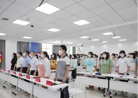 仪式第一项,全体起立奏唱国歌。在庄严肃穆的国歌声中,本次基层党校开班典礼正式开始。