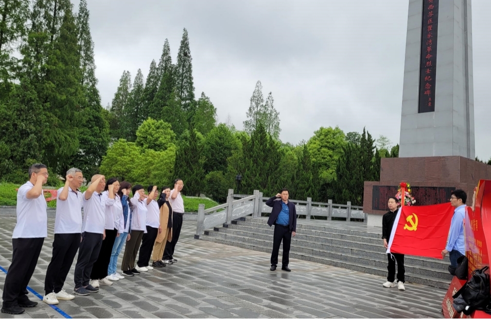 随后,大家前往全国爱国主义教育示范基地——瞿家湾湘鄂西革命根据地旧址和洪湖市委党校参观学习。在瞿家湾,党员们缅怀了以贺龙、周逸群、段德昌为代表的革命先烈们浴血奋战、创建以洪湖苏区为中心的湘鄂西革命根据地的伟大历史。大家瞻仰了革命烈士陵园,向烈士陵园敬献了花篮,并重温了入党誓词。在洪湖市委党校的党员政治生活馆,大家了进一步了解了党旗、誓言的发展历史和洪湖地区革命先烈们的英雄事迹,感悟“百折不挠、同舟共济、不怕牺牲、勇于奉献”的“洪湖精神”。