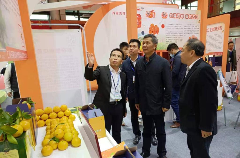 唐元贵(左一)为广东省消费扶贫工作专班负责人邓培熙做介绍