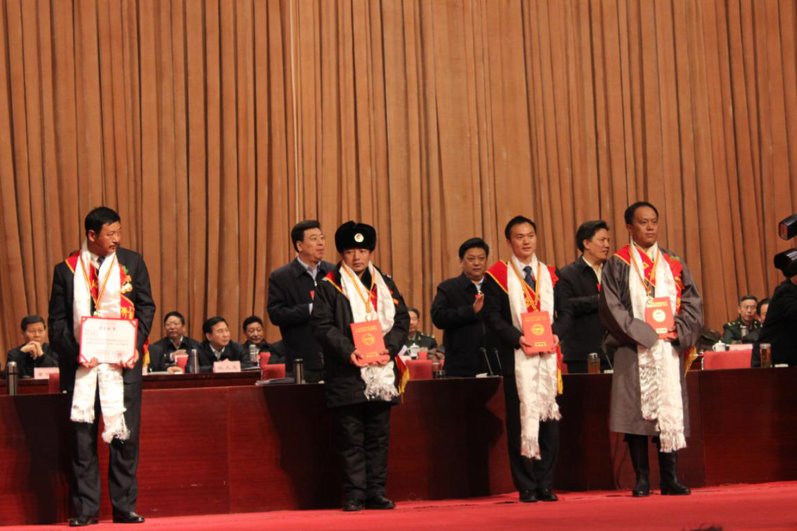 王东海荣获西藏自治区第四届先进工作者(前排右二)