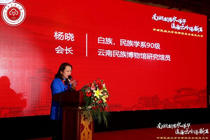 杨晓会长代表首届云南校友会理事会发言。她表示,云南各民族校友分布于云岭大地各州市、各行业,云南校友的力量日益扩大。云南校友会的成立,将为云南校友搭建情感交流、资源共享的平台。