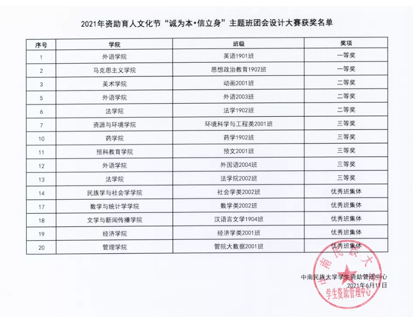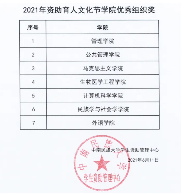 (四)2021年“资助育人文化节”学院优秀组织奖获奖名单